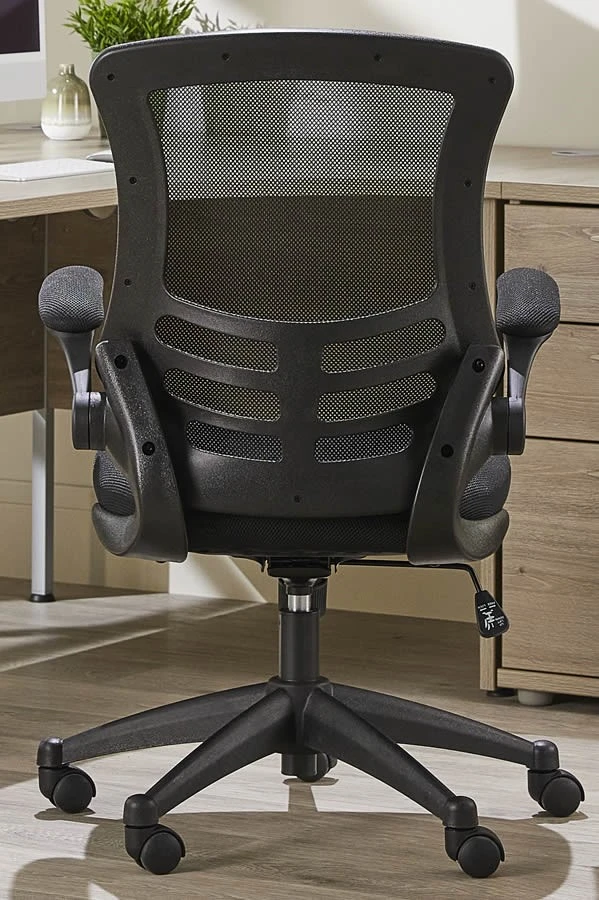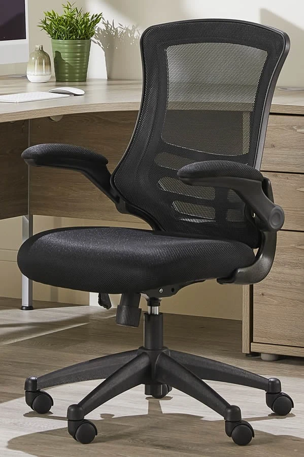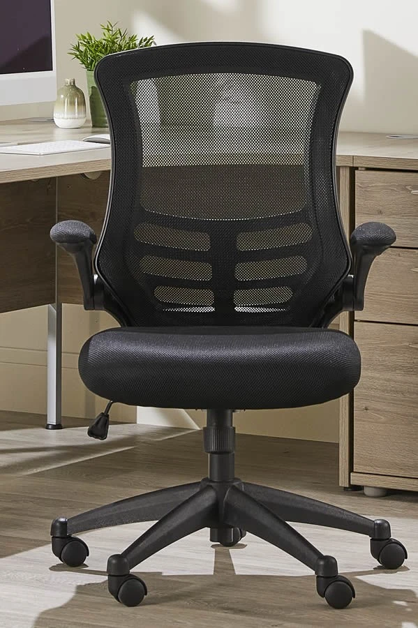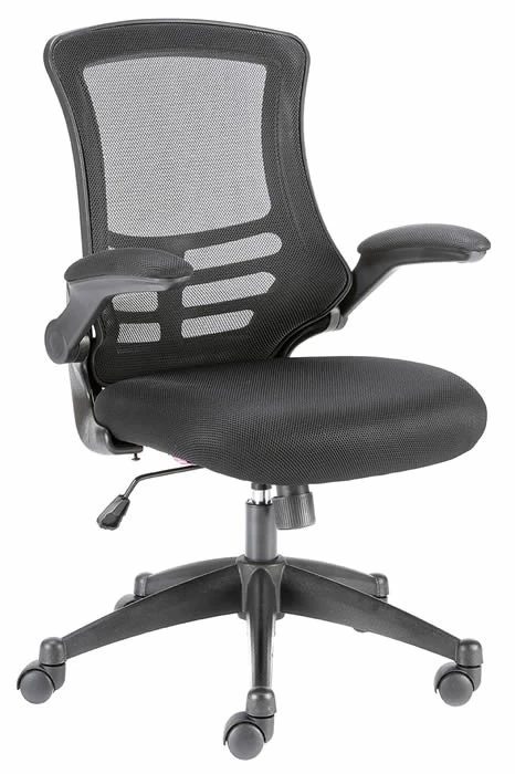 The Alabama designer mesh back office chair with folding arms is available in five colours. The operator chair has a tilt mechanism lockable in an upright position finished with an airflow mesh seat with a breathable mesh back.