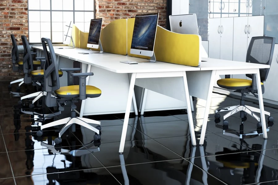 The Ascend Stylish Double Wave Desk has a sleek and elegant A frame leg design that is angled at 100 degrees. The leg is powder coated in a crisp white finish and has self-levelling feet for stability. The desk has a spacious and comfortable size that can accommodate your work needs. You can choose from four different desk widths: 1200, 1400, 1600 and 1800 mm.