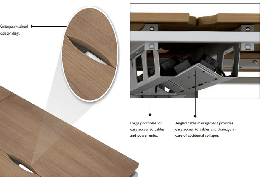But that’s not all. The Aura Beam 8 Person Wave Bench Desk also comes with integrated cable management that spans the full length of the desk configuration. This means you can keep your cables organized and hidden, without compromising on functionality or aesthetics. You can also use the concealed leg format to optimize your space and avoid any interference with under desk storage or other users.