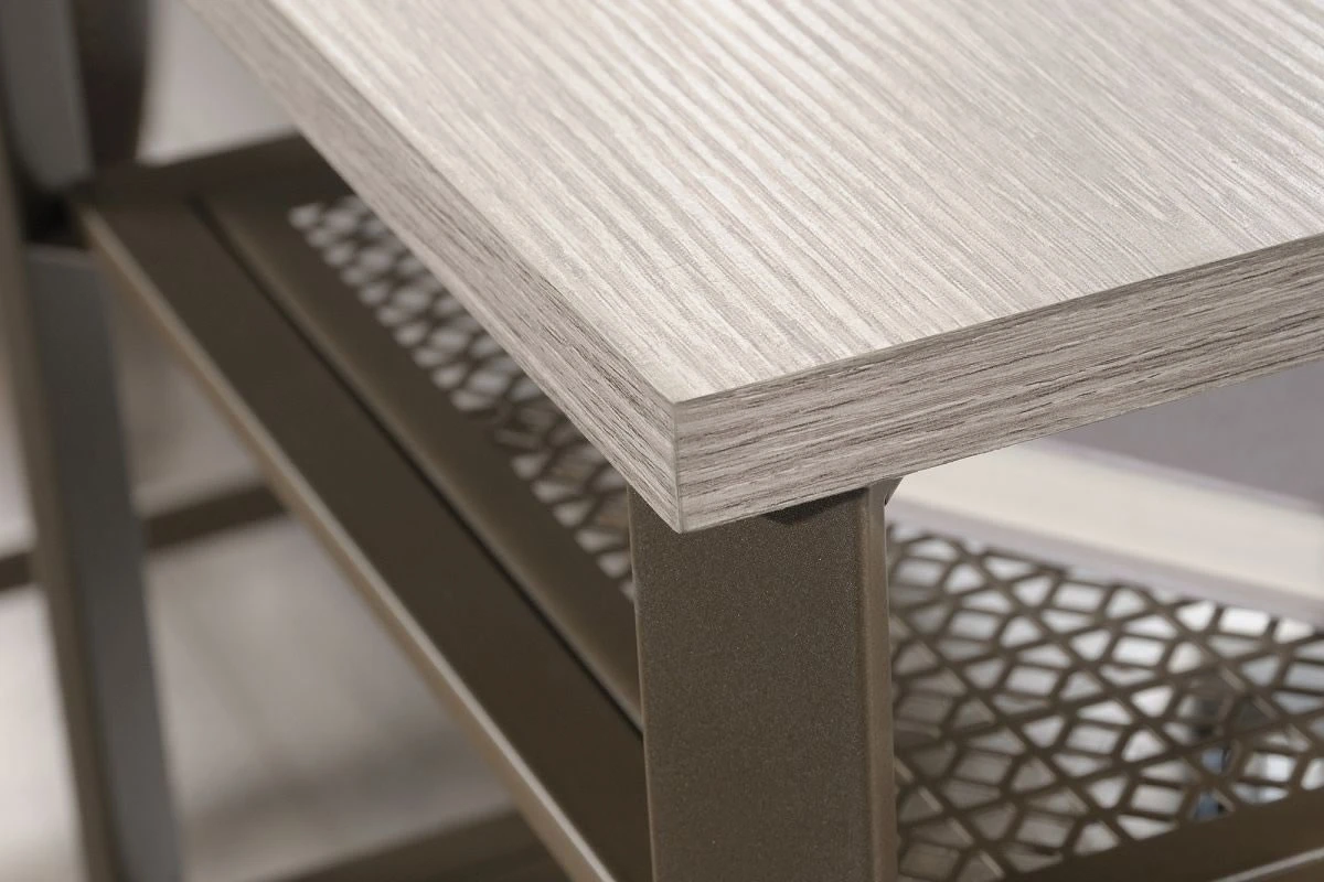 The durable satin taupe-coloured metal frame has perforated metal construction and can be assembled with the shelves on the left or the right, ideal for versatility and design options.