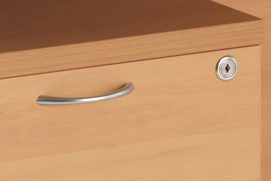 The matching desk-high pedestal is part of the Kestral range, and complements the Kestral desk perfectly (see main image). It has two box drawers and one file drawer, so you can store your documents and belongings securely. You can lock the pedestal with the keys included, so you don’t have to worry about losing anything. The pedestal also has a scratch-resistant worktop that is 25mm thick, just like the desk.