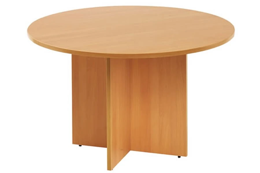 The circular office/meeting table has a beech finish that adds a touch of natural beauty to your office. It creates a warm and cozy atmosphere that makes you feel relaxed and happy. The table has cruciform legs that match the finish and provide stability and support. The table also has levelling feet that can adapt to any uneven floors. The table is easy to clean and maintain.