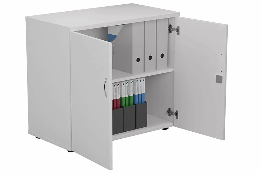 The Kestral White Desk High Cupboard has two doors that lock with three locking points for extra security. You can store your files, books, stationery and other items safely and neatly inside. The cupboard comes with two keys, so you can keep one as a spare or share it with a colleague.