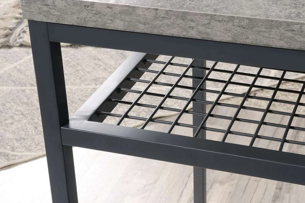 - Durable, powder-coated metal frame with wire mesh shelf