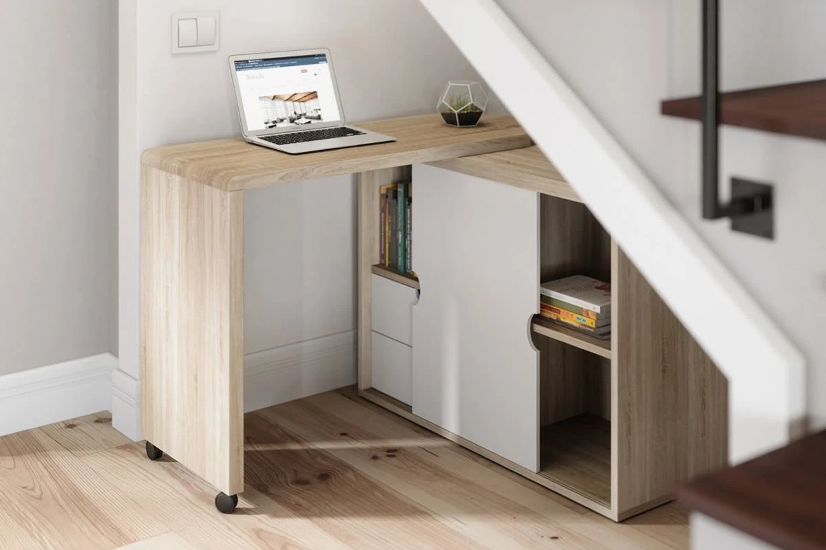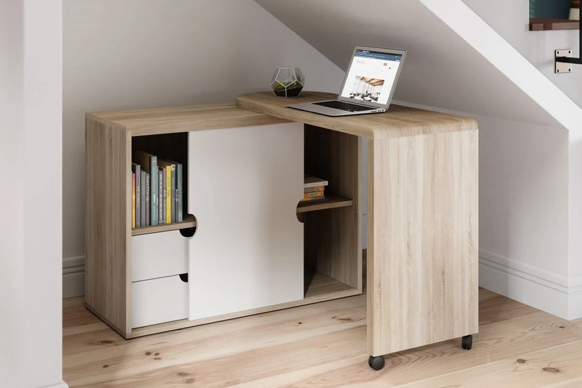 The Office Pivot Cupboard Desk is a fantastic and modern style option, a perfect pick for the home office, under the stairs or anywhere where space is of a premium! It not only has a spacious working area, but it also has two storage drawers for additional storage and a sliding door which conceals an additional storage area.
