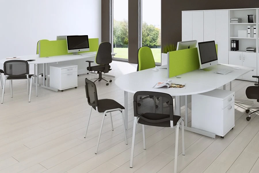 - Mobile pedestal fits neatly under a rectangular & wave workstation
