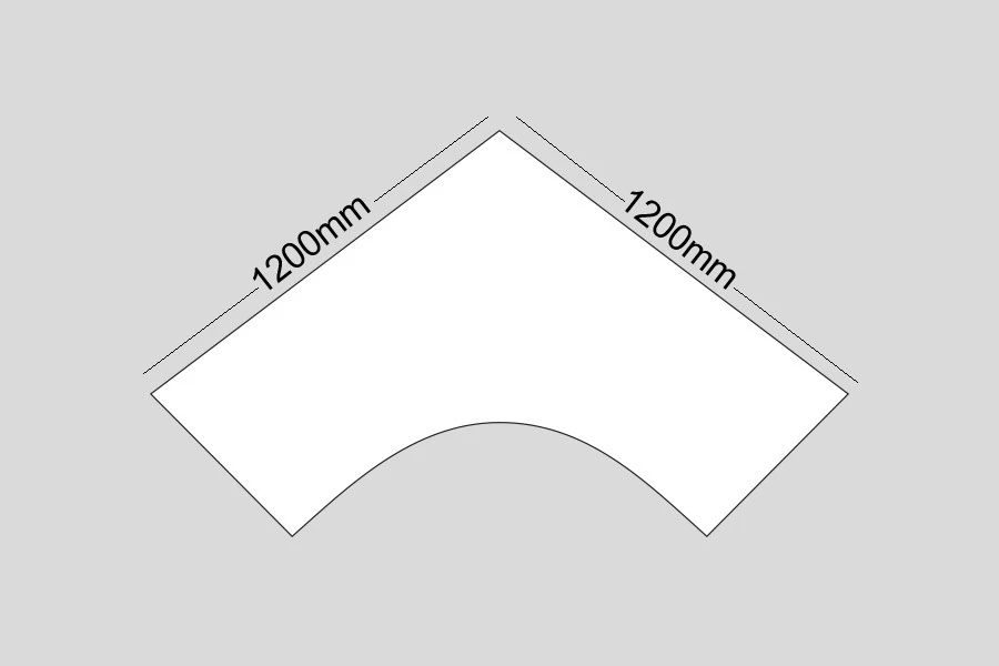- Depth β 600mm deep at the narrowest end, 1200mm deep at the crescent end