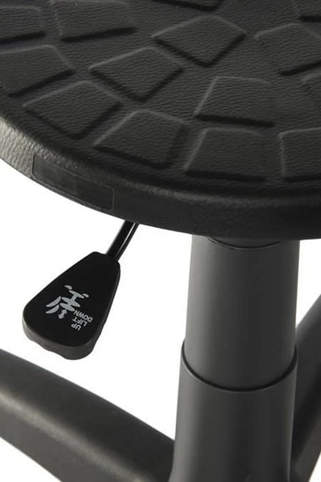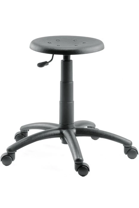 Durable, easy to clean soft polyurethane seat with gas lift seat height adjustment and sturdy nylon five star base.