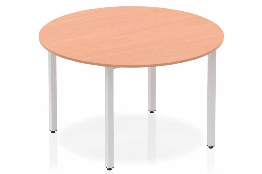 Transform your workspace with the Price Point meeting table, a sleek and elegant piece of furniture that blends modern design and functionality. This round table is perfect for collaborative work, with a spacious 25mm thick top that can accommodate laptops, notebooks, and coffee mugs. The silver-coated post leg adds a touch of sophistication and stability, while the 2mm abs protective edging and heat-resistant white melamine finish ensure durability and easy maintenance.Â