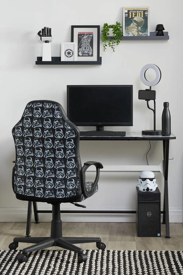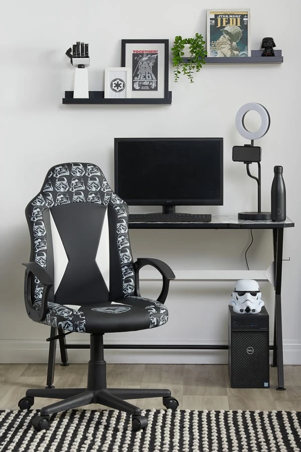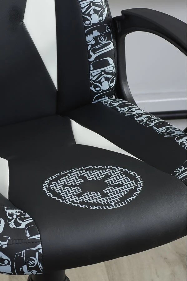 The Stormtrooper patterned computer gaming chair is ergonomically designed for hours of gaming comfort.